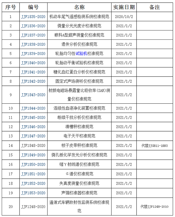 市場監督總局發布20項計量技術規范